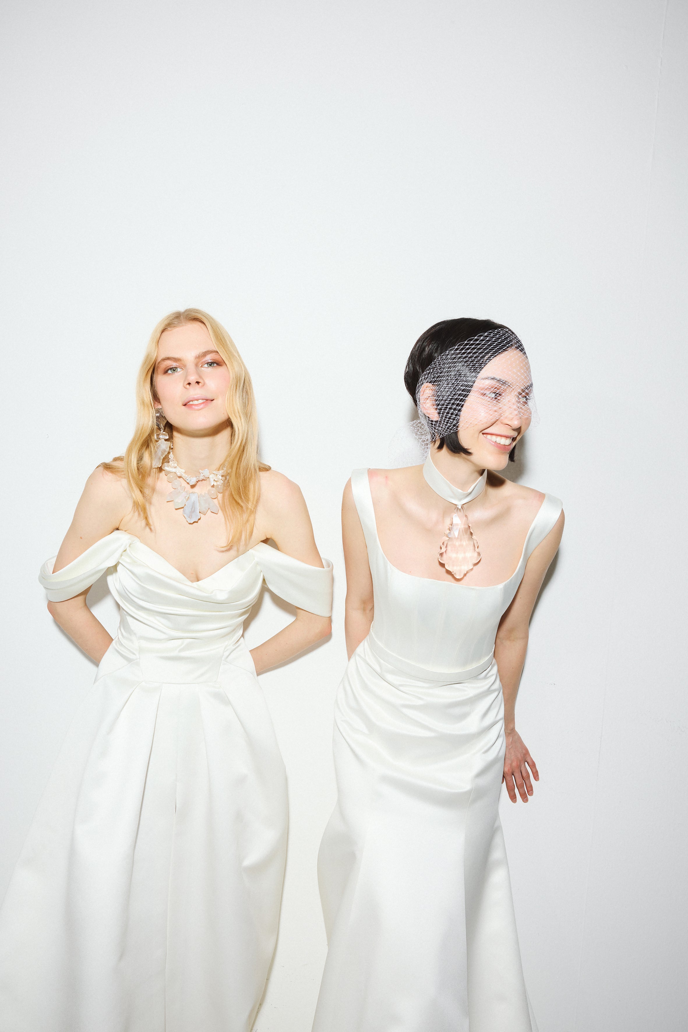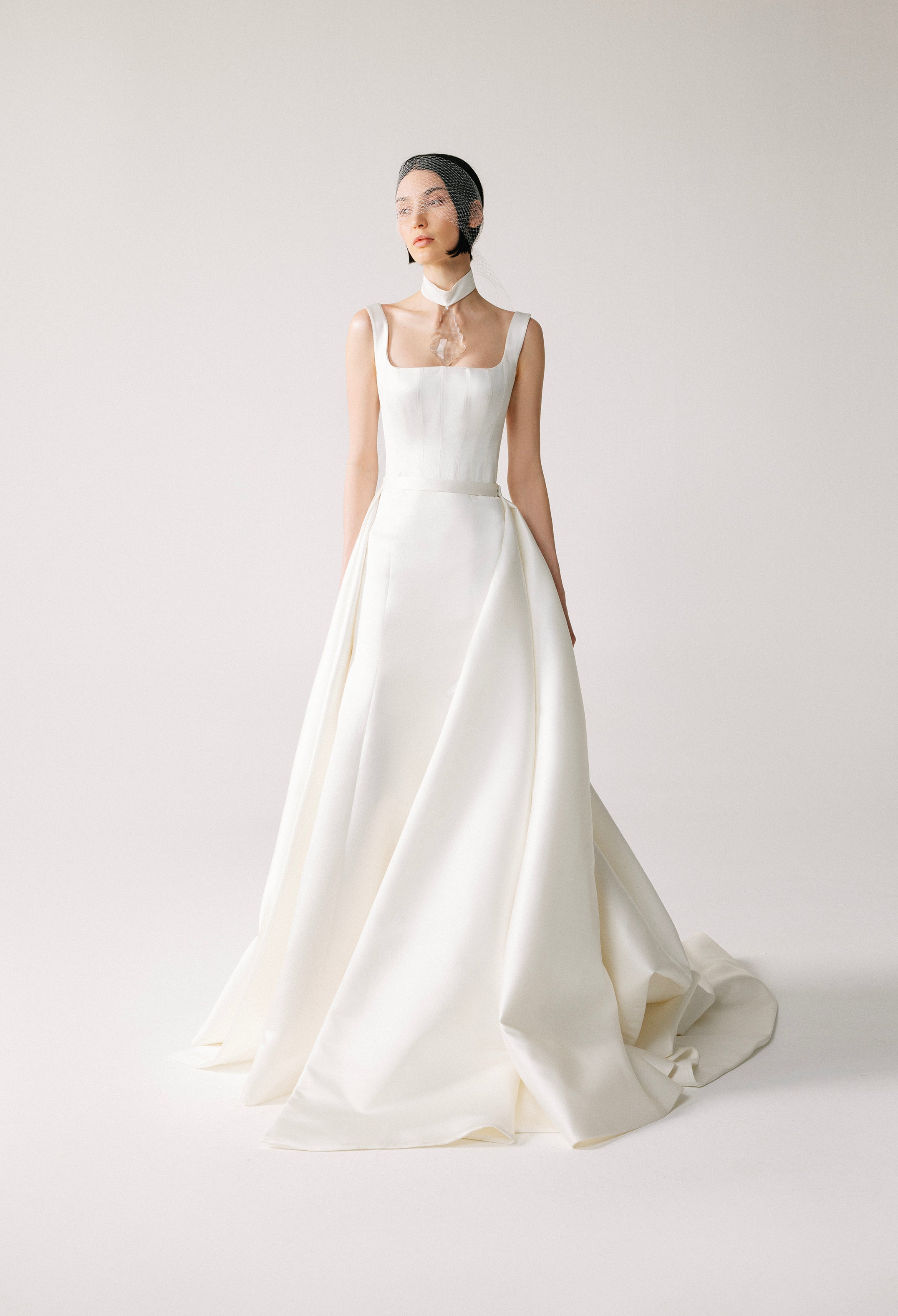 Victorian style bustier square neck silk satin mermaid gown, detachable skirt is sold separately.