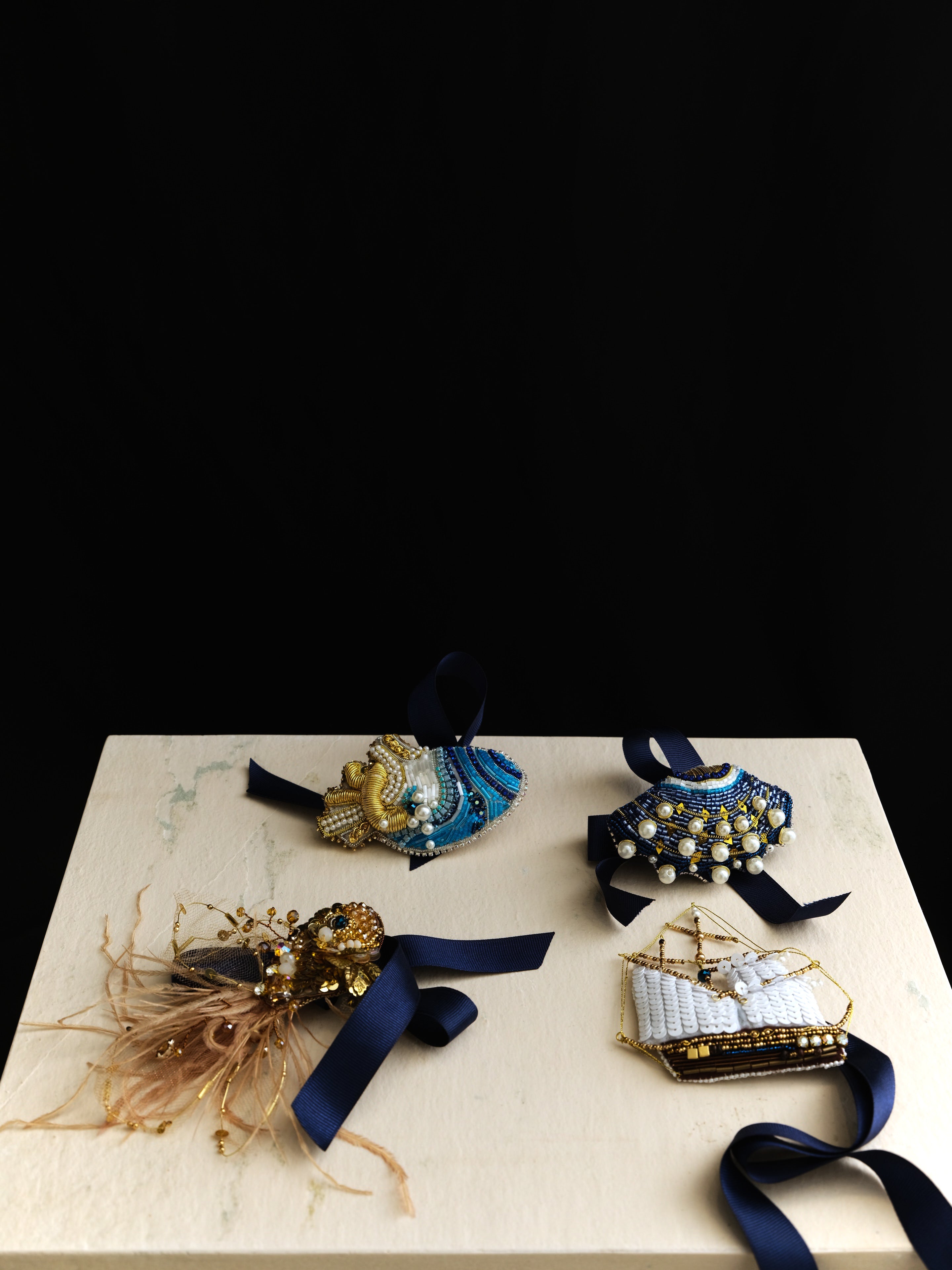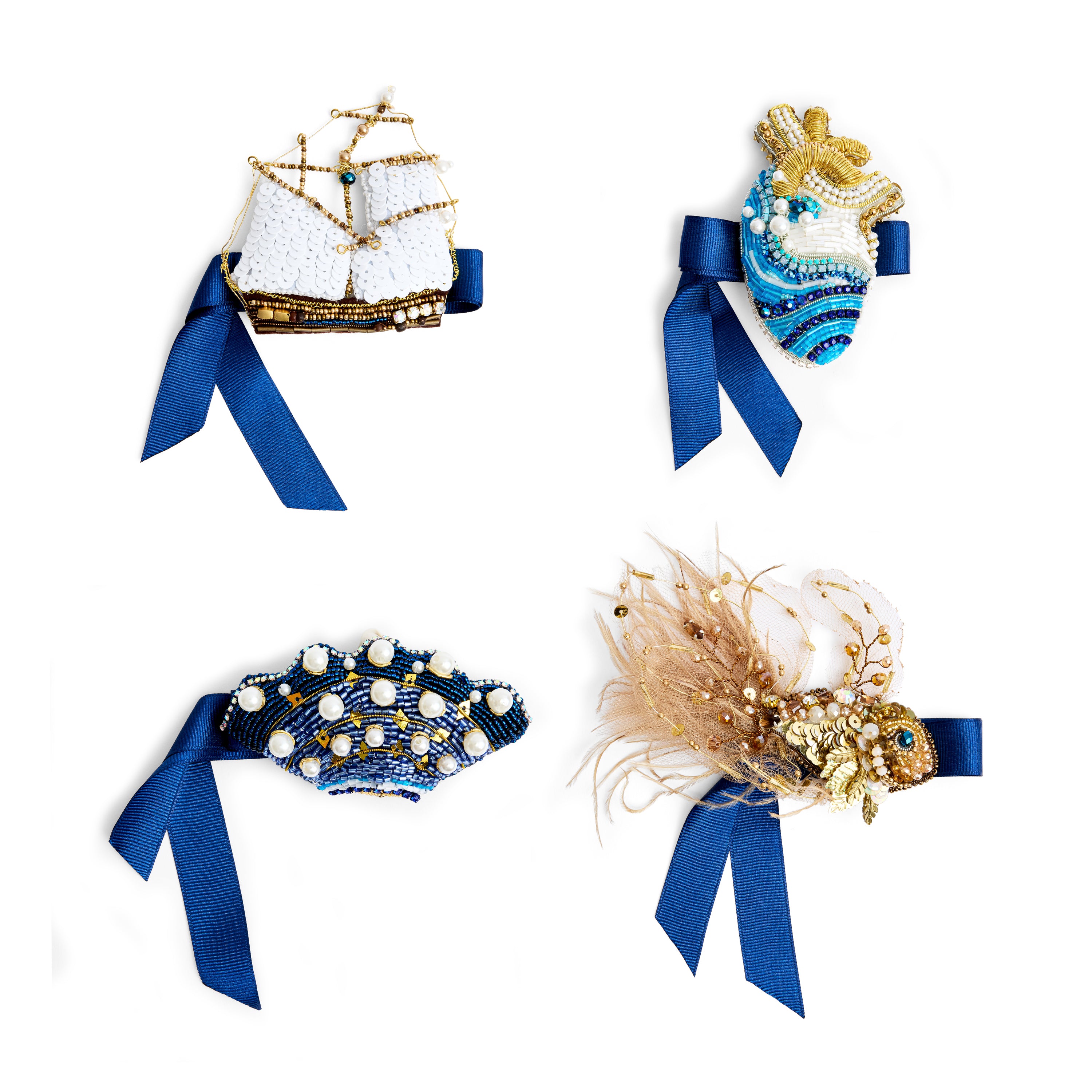 Crafted entirely by hand at the BÉGUM BDH atelier, this couture napkin ring set embodies the soft pace of Aegean life — the salt on sun-warmed skin, the quiet elegance of linen sails, and the poetry of coastal dining. Embroidered with pearls and crystals, it’s perfect for seaside weddings, blue voyage celebrations, and elevated summer tables.