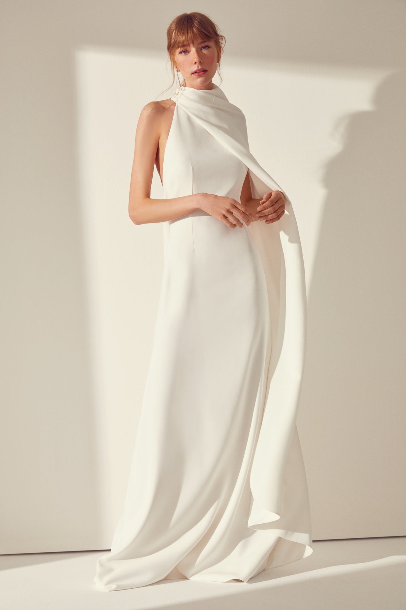 Meet our ultra-glamorous two pieces Daphne gown! For those unabashed by the extravagance and drama with a minimalist vibe. It is totally made of Italian crepe. The inside halter neck dress can be worn with or without its detachable cape. Perfect for the cool romantics and minimalists!
