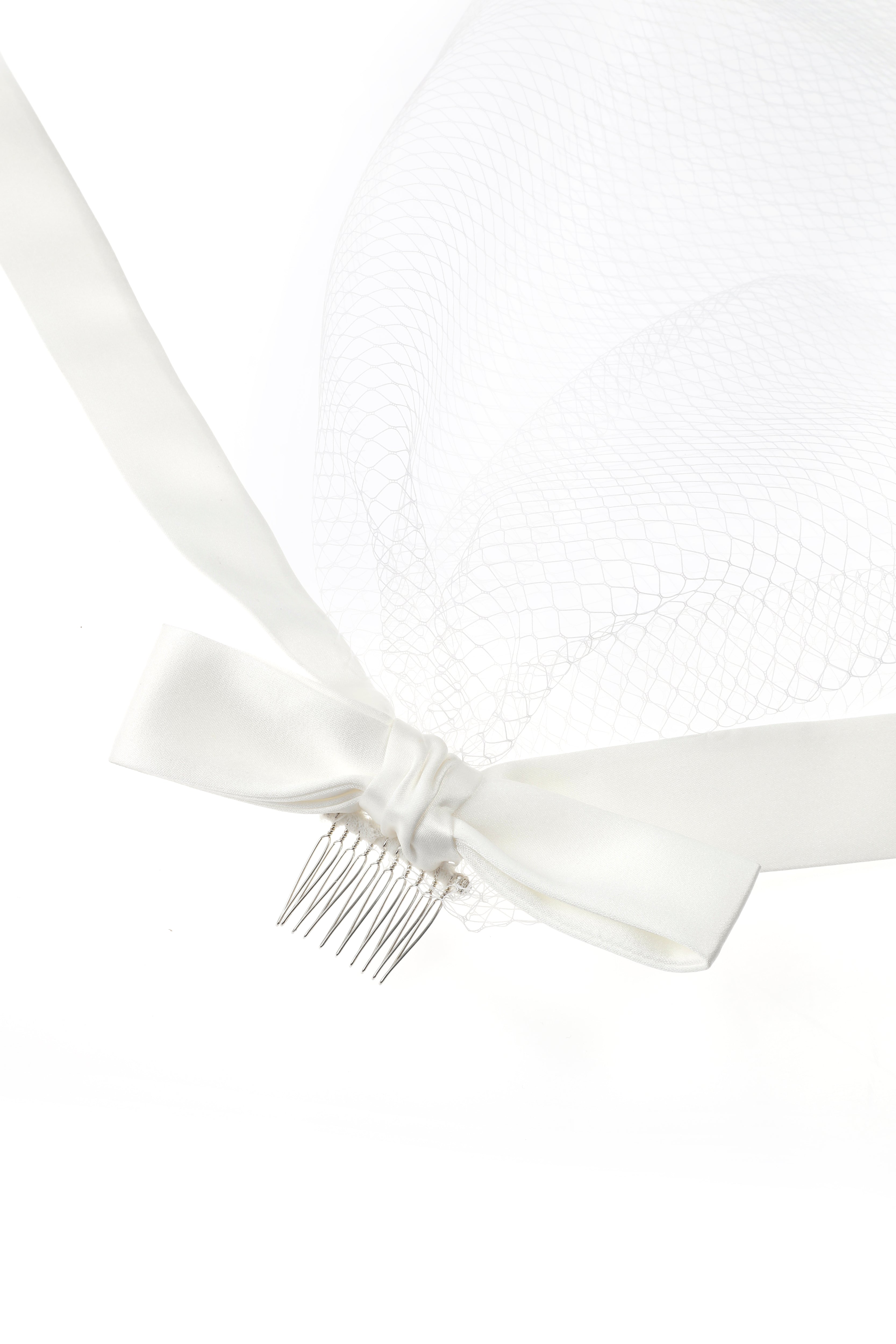 Classic style cut short veil with a satin ribbon.