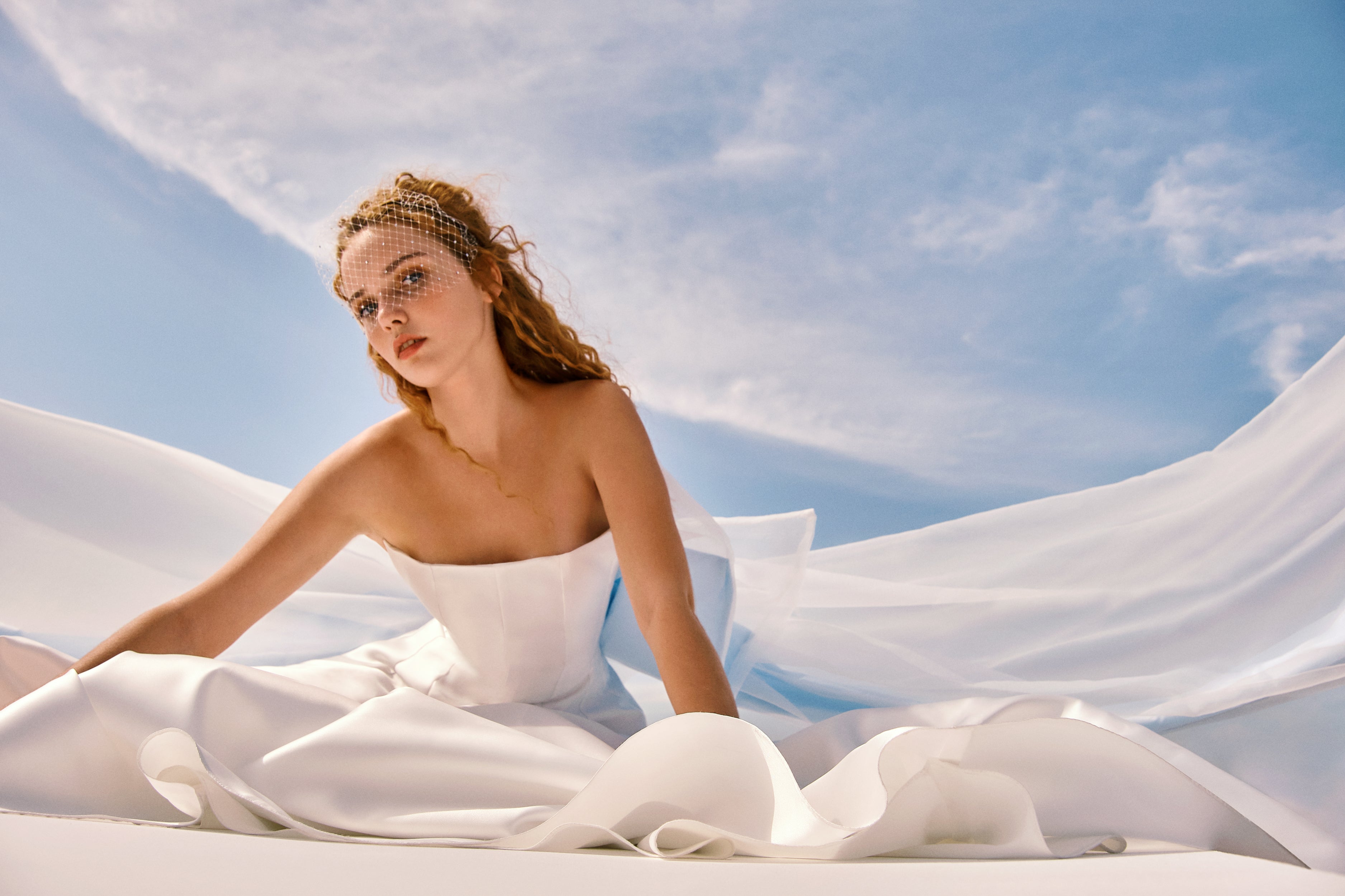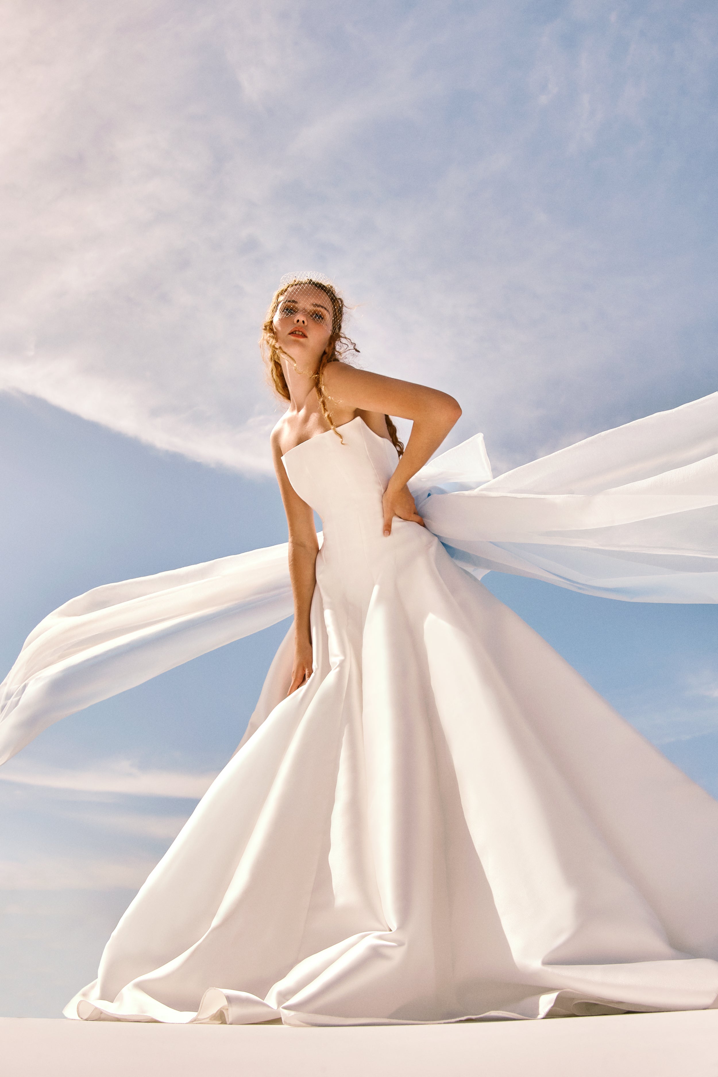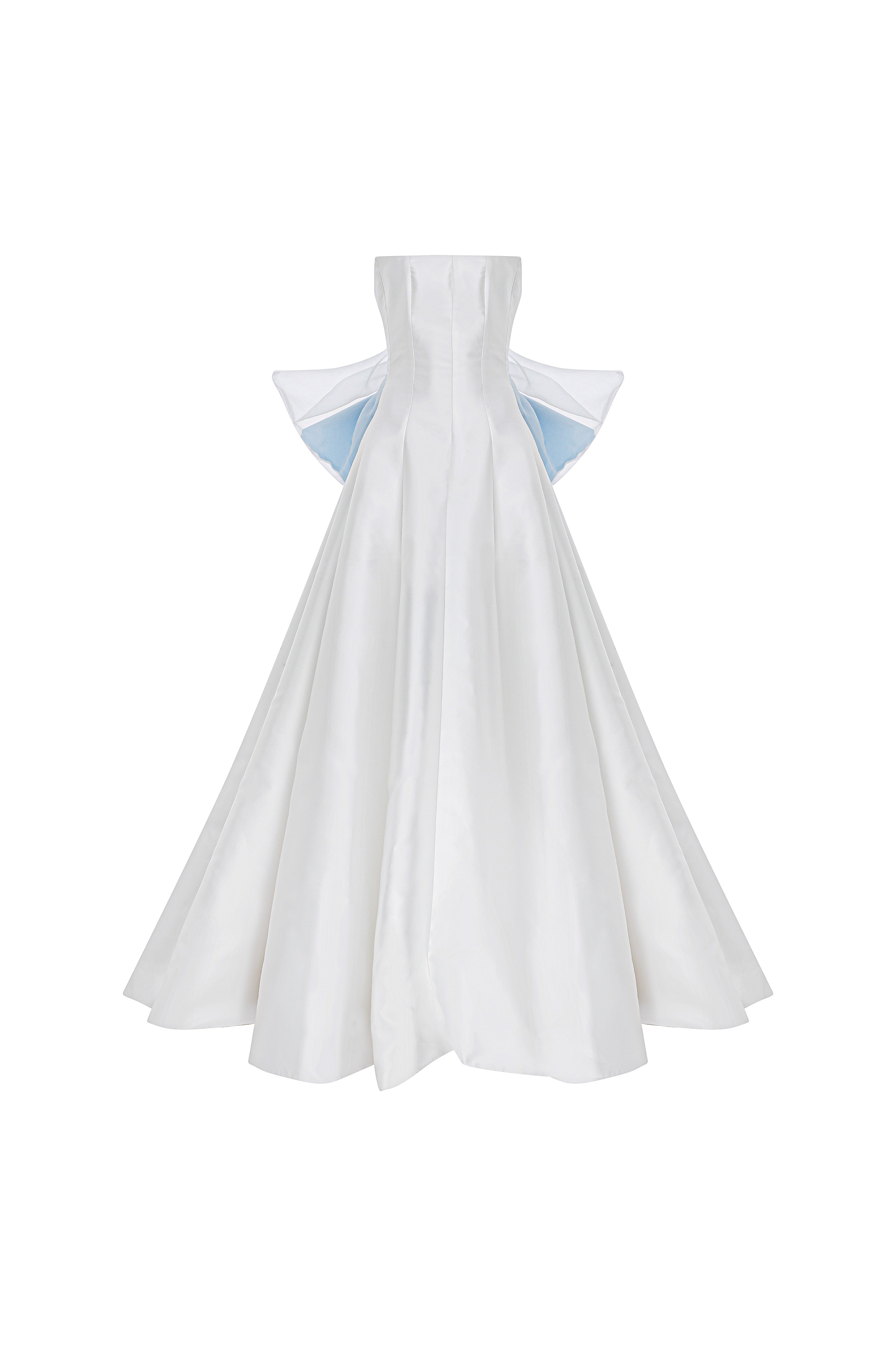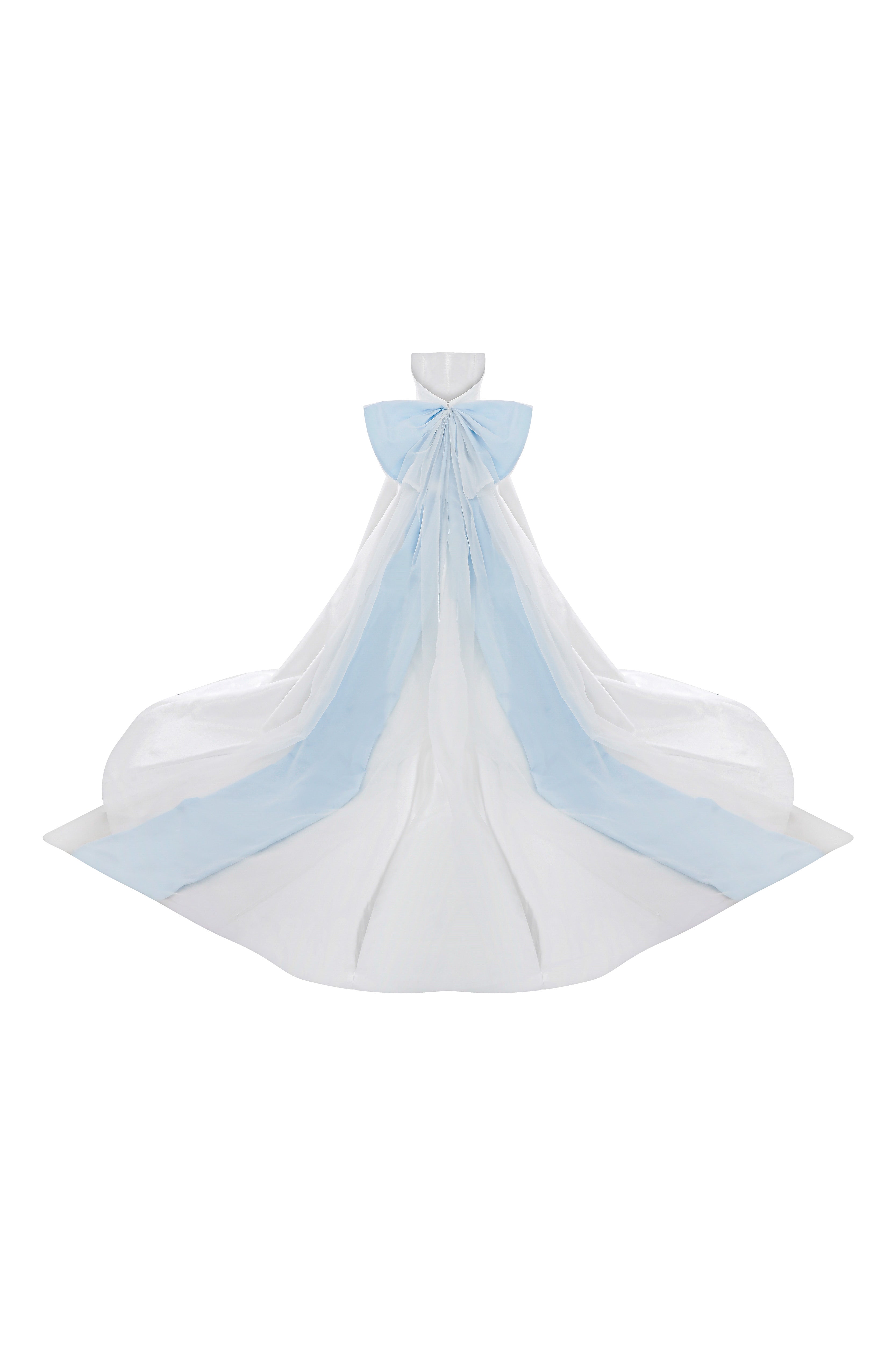 Luna is made of multiple cuts that fits perfect for all body types. The dramatic blue taffeta bow is covered with organza that gives the cloud- like feel.
