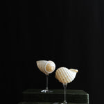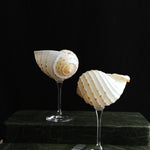 Each glass is topped with a naturally striped seashell, unique in form and story — a piece of nature, elevated.