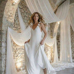 The signature BÉGUM silk satin pleats bring a refined sense of movement to the