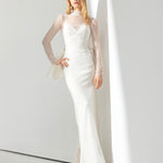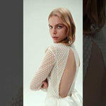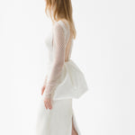 Long sleeves dress with high neck and open back with its satin bows. There is a slip satin dress underneath that can be worn separately.