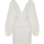 A sculptural statement in motion — Sorélle is a striking cocktail dress that fuses softness with structure. Featuring voluminous draped sleeves in silk chiffon, a hand-embroidered sequin body, and a detachable inner bralette, it offers both dramatic flair and architectural precision. Designed for modern icons who dare to redefine bridal and eveningwear codes.