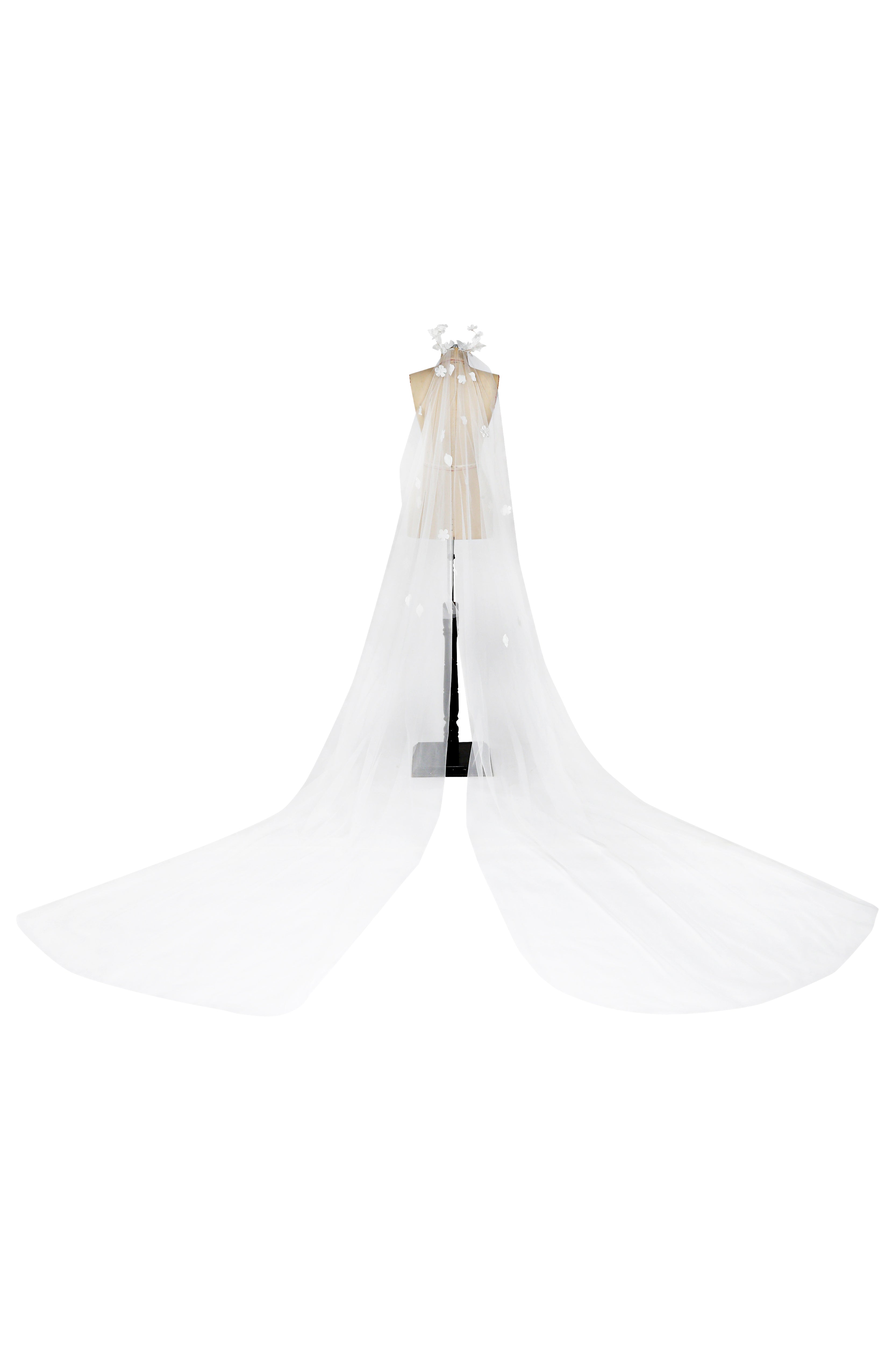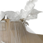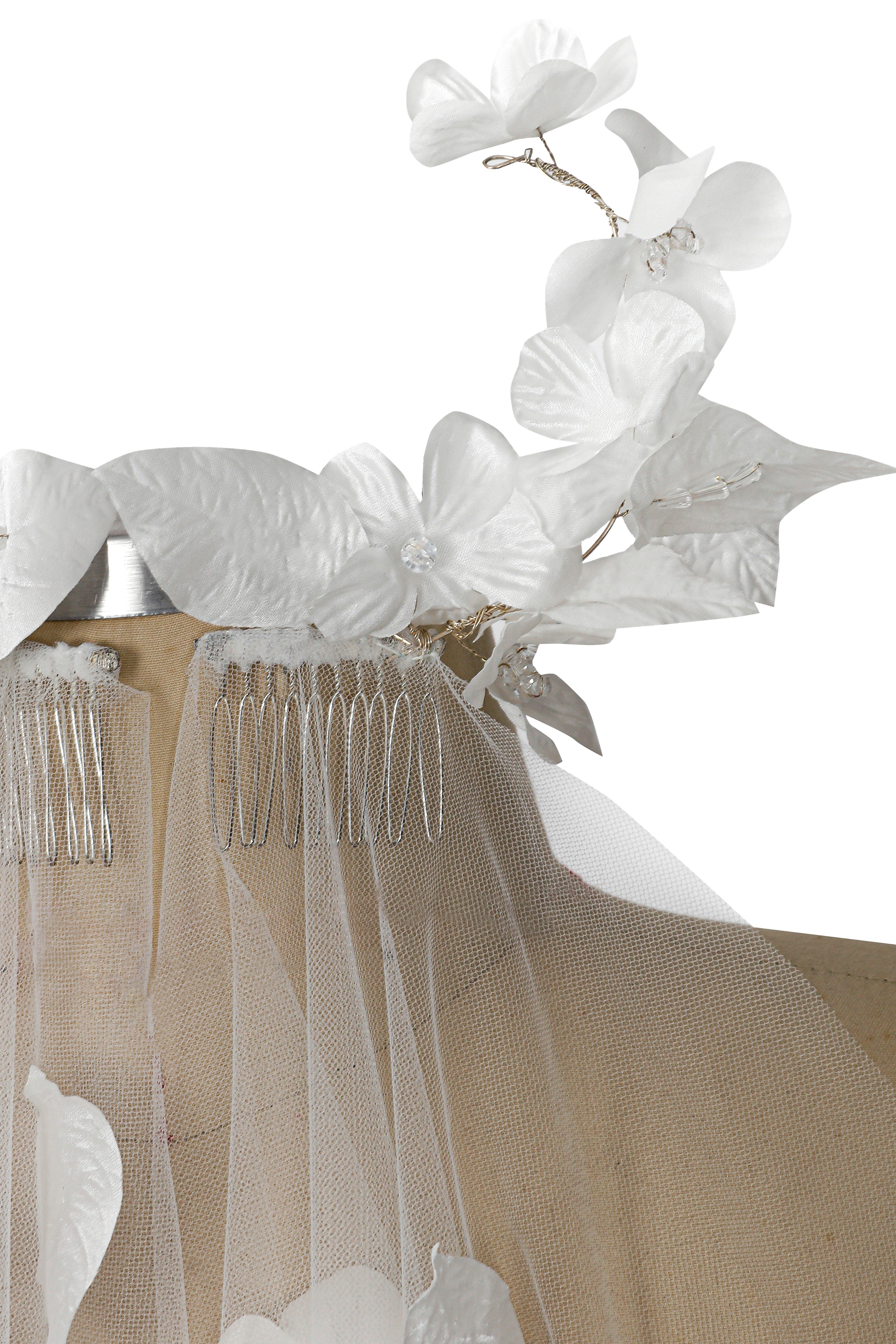 •  Handmade satin flowers and leaves as a hair accessory attached on the tulles