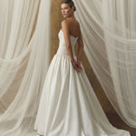 MAELLE, tamamı mikado kumaştan hazırlanan yapısı ve düşük bel kesimiyle net bir silüet sunar.